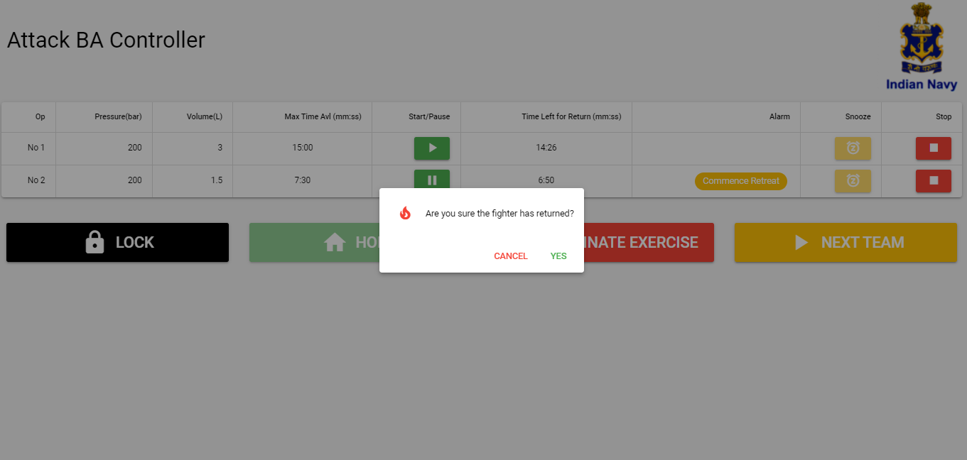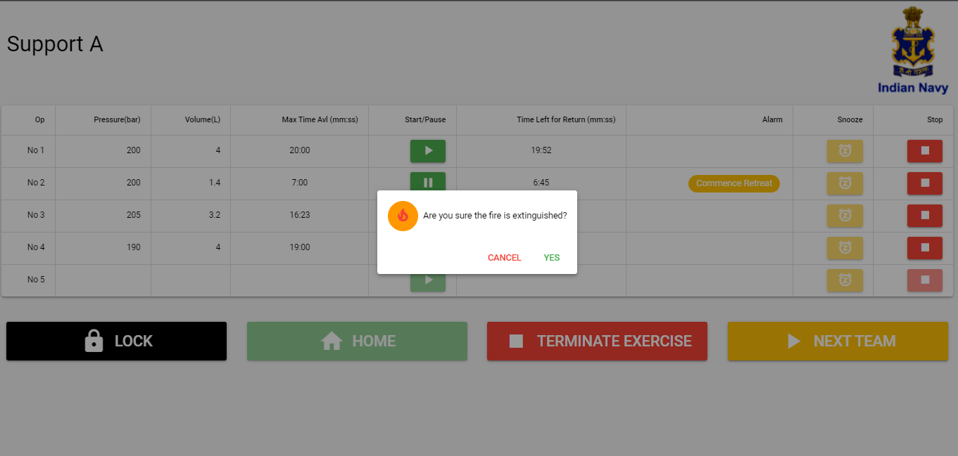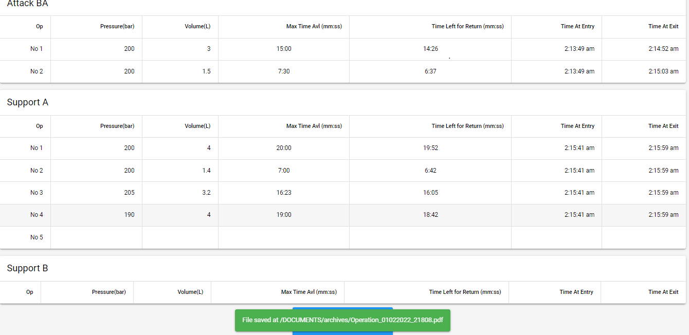 An Android app was developed to monitor the optimum time period, fire-fighters can be exposed with available oxygen, featured with proper visual and audio alarms and maintenance of regular operation reports.