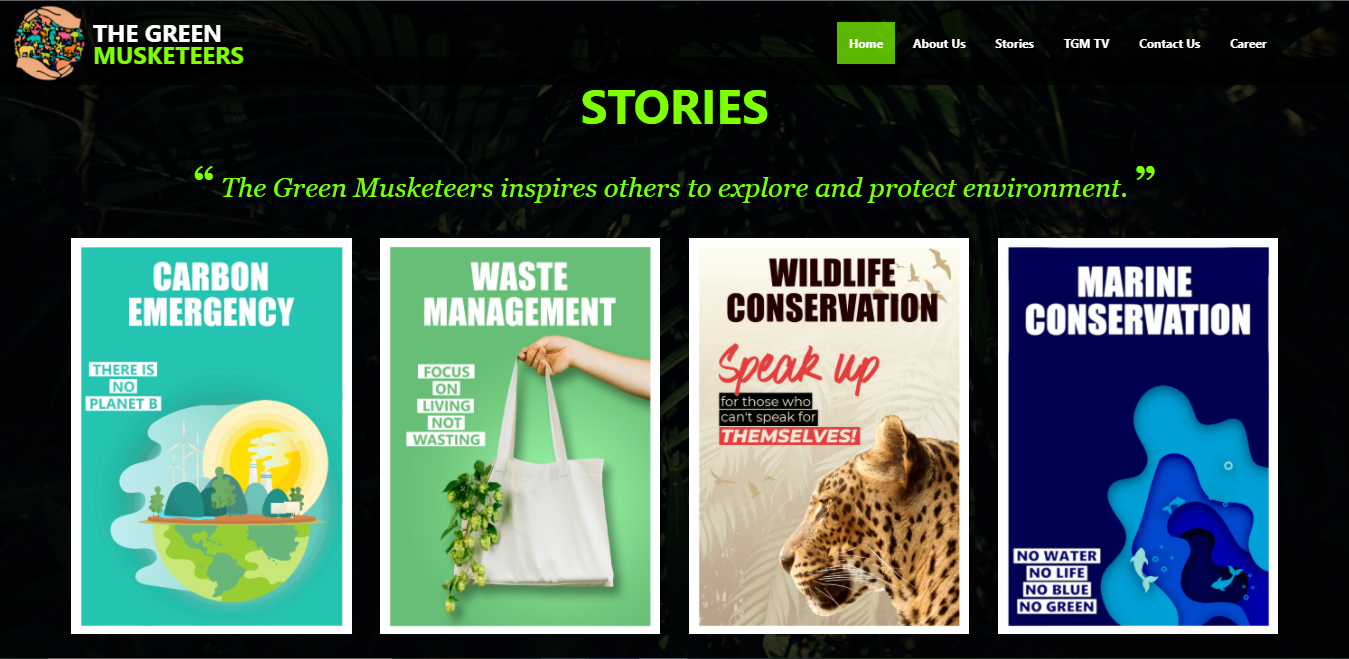 The Green Musketeers is a youth community which aims at creating an army of green musketeers by inspiring people of all ages to actively take part in Environment and Wildlife Conservation. Our venture is very ordinary and it portrays clearly how we support through elementary research, education and communicating smart ideas and strategies to save the planet for a greener and cleaner environment.