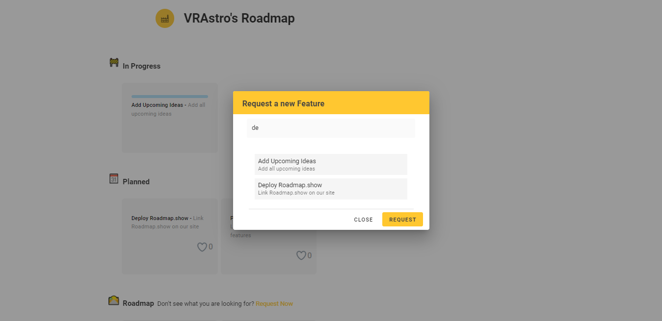 Roadmap allows a company to develop a perfect roadmap for its product development. Roadmap has a kanban view which allows every task to be identified in a particular stage. It also allows users to request for a feature to the company, which can be accept/rejected or upvoted.